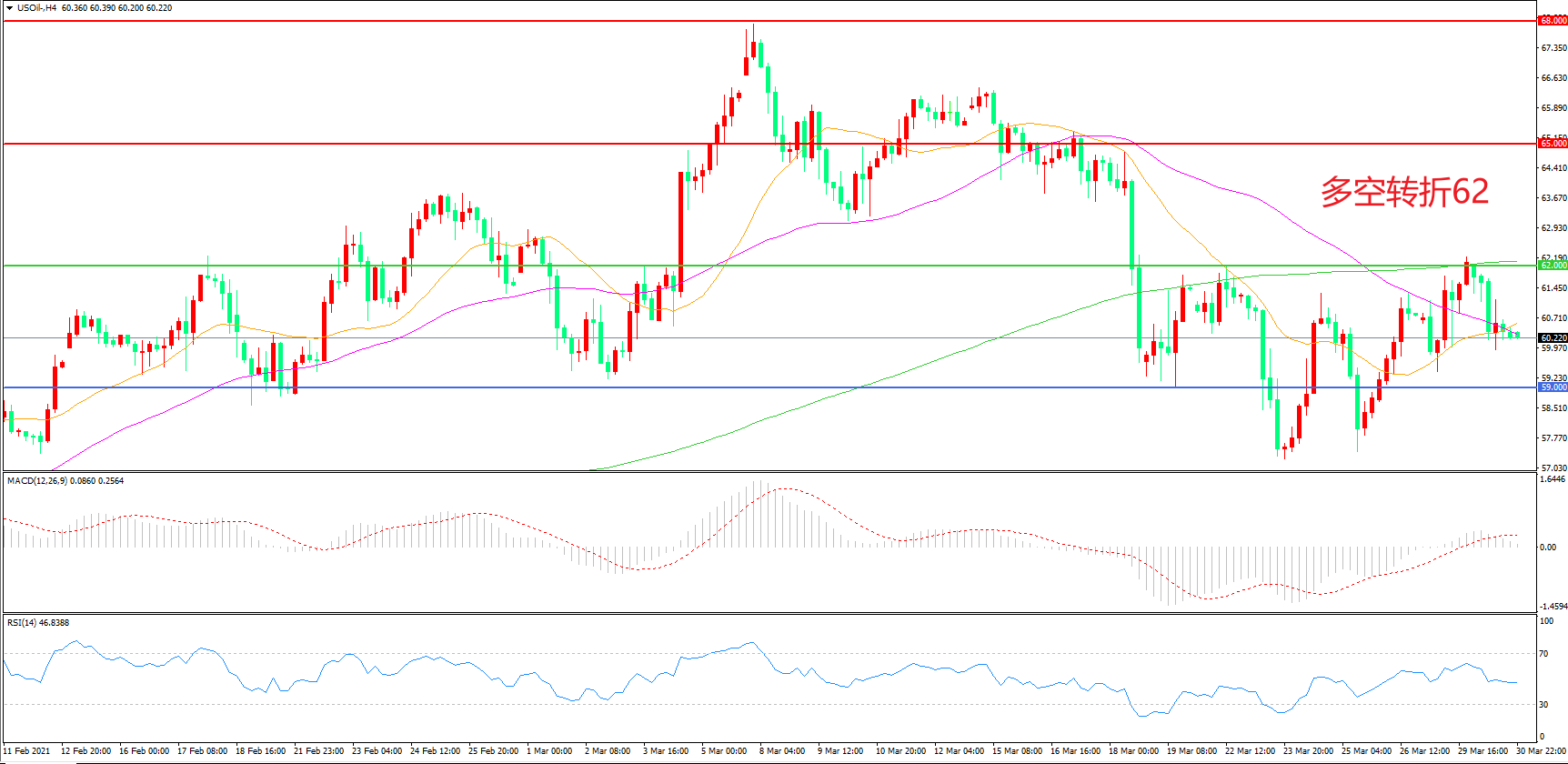阻力位:65.00 68.00