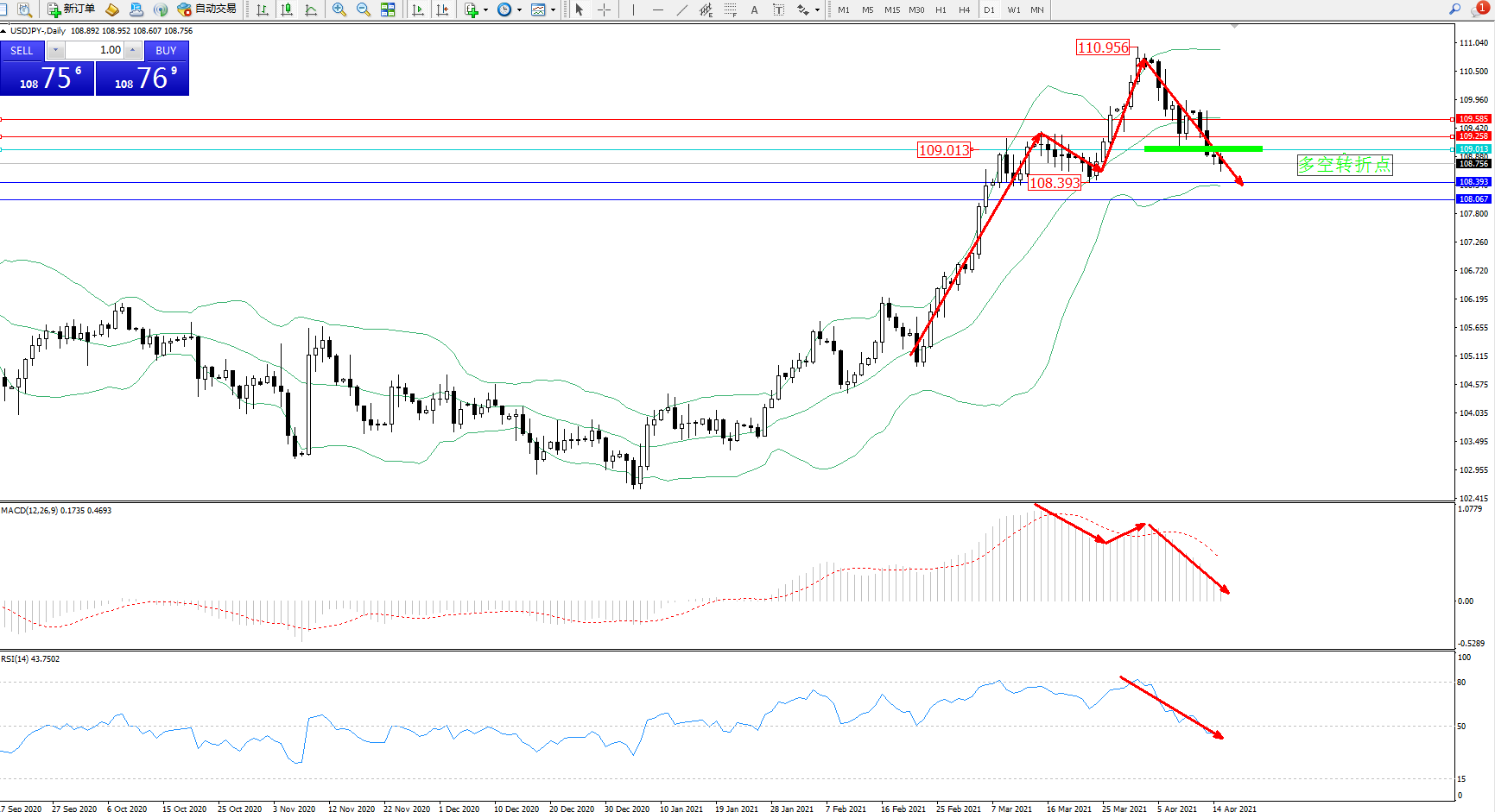 多空转折点:109.013