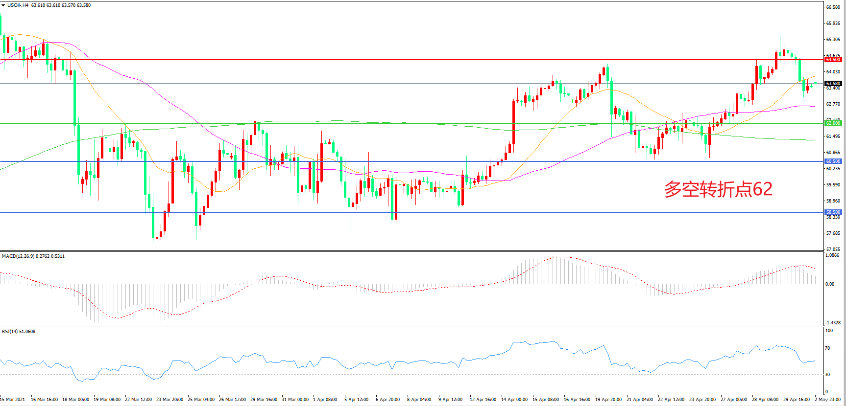 交易策略:在62.00之上看涨,目标64.50    66.50