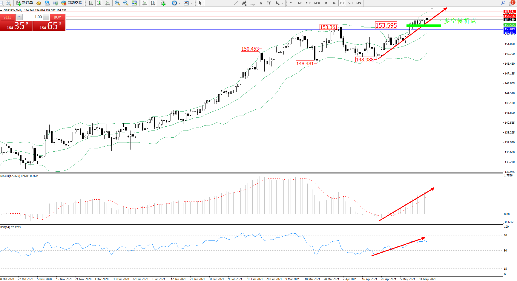 多空转折点:153.595