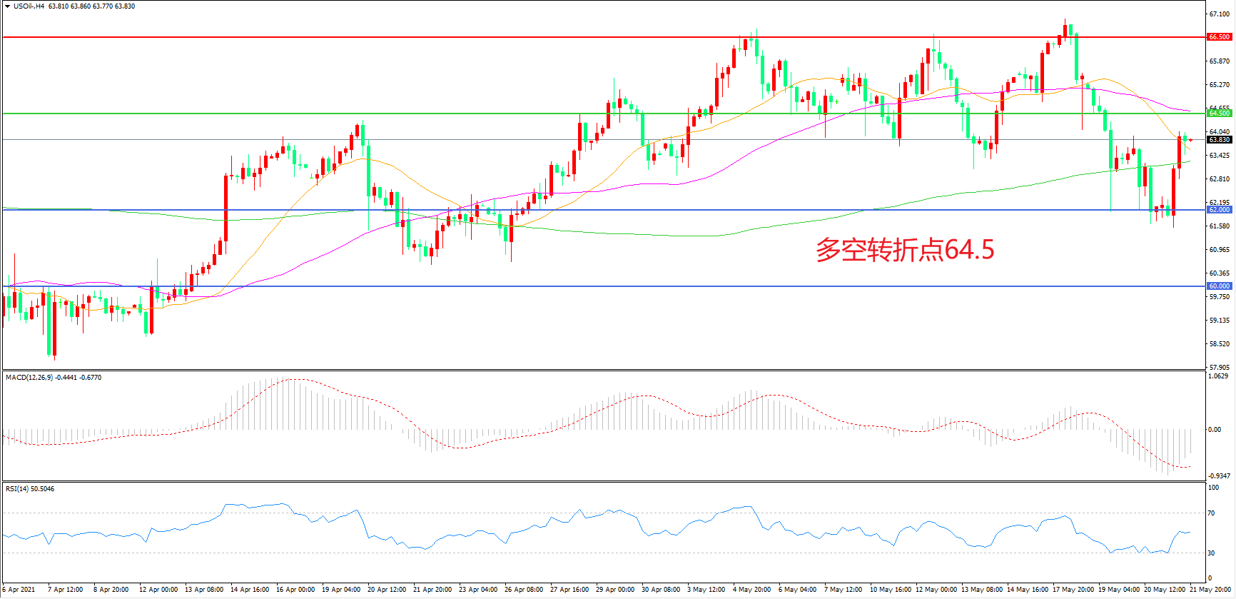 交易策略:在64.50之下看跌,目标62.00    60.00