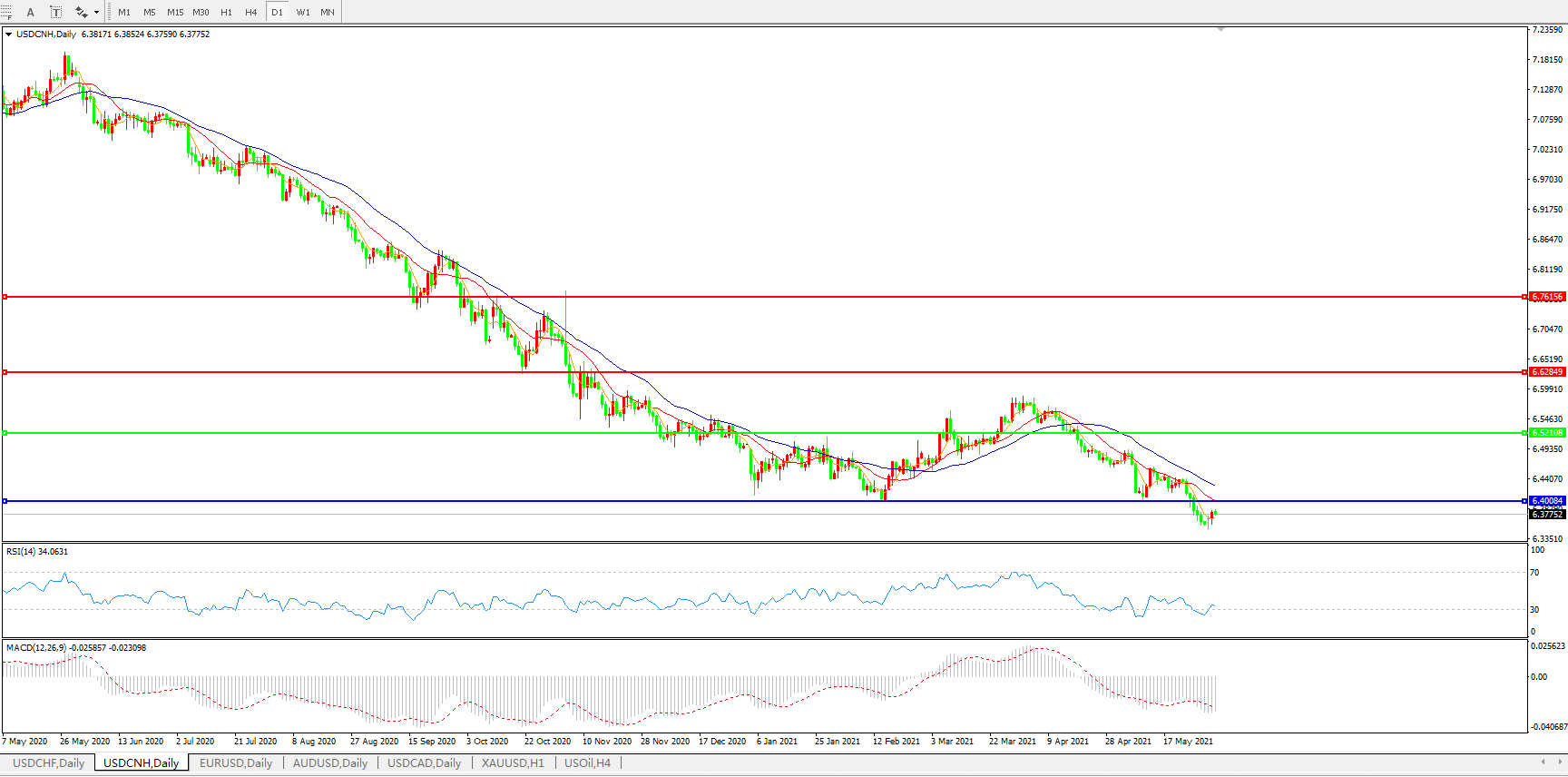 美元兑人民币USDCNH    日线图: