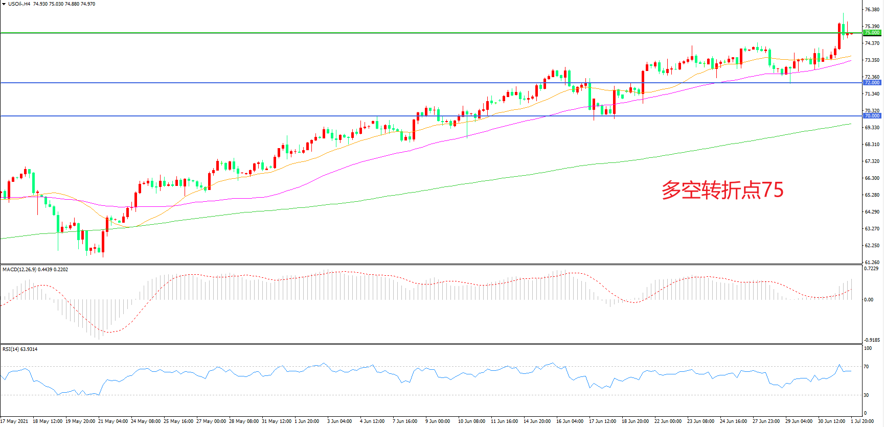 交易策略:在75.00之上看涨,目标78.00    80.00