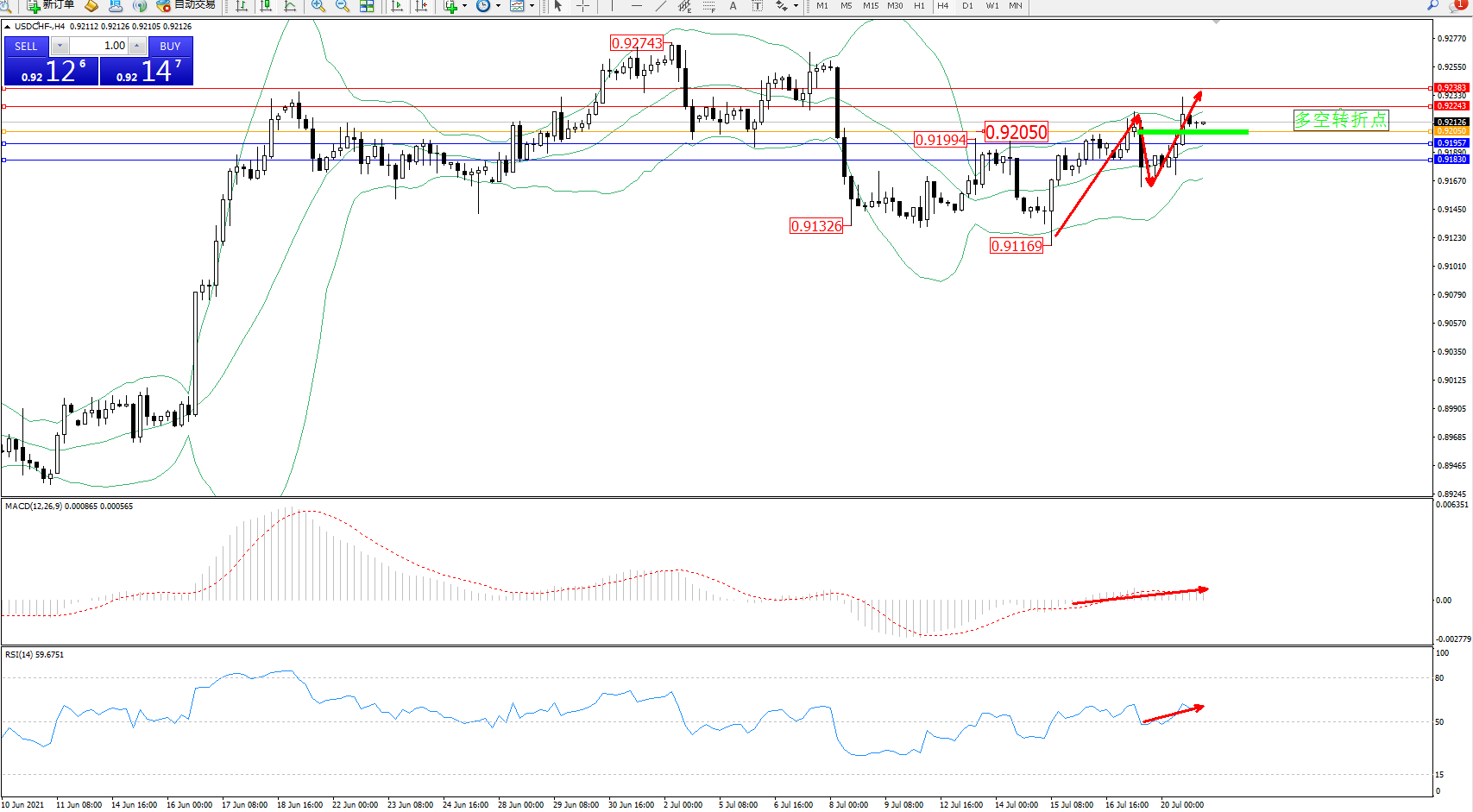 交易策略:0.92050上方看涨,目标0.92243、0.92383