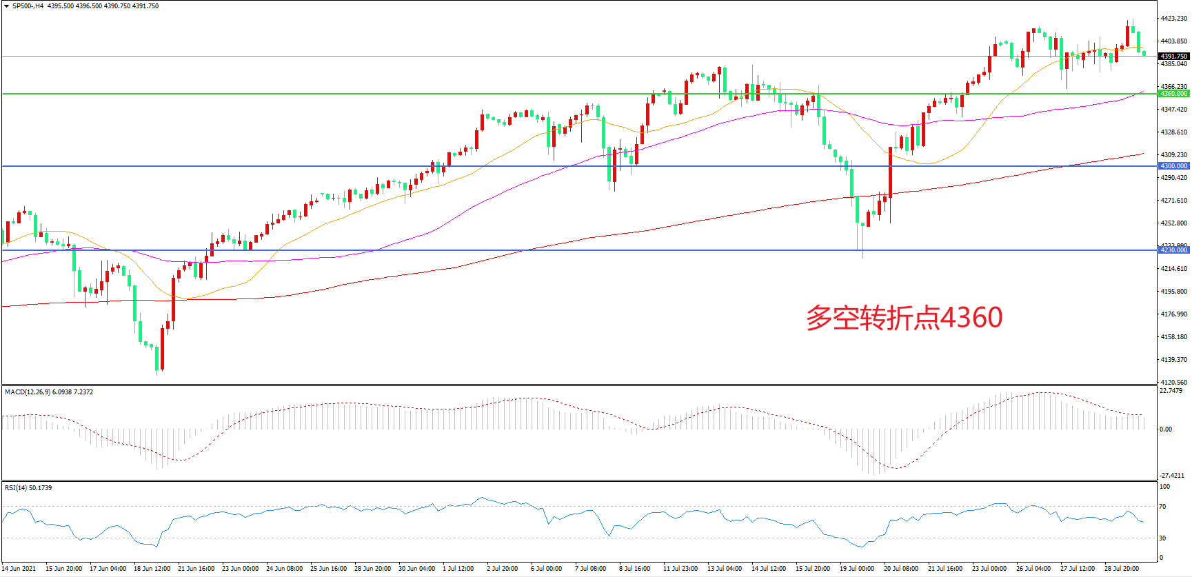 备选策略:在4360.00之下看跌,目标4300.00    4230.00