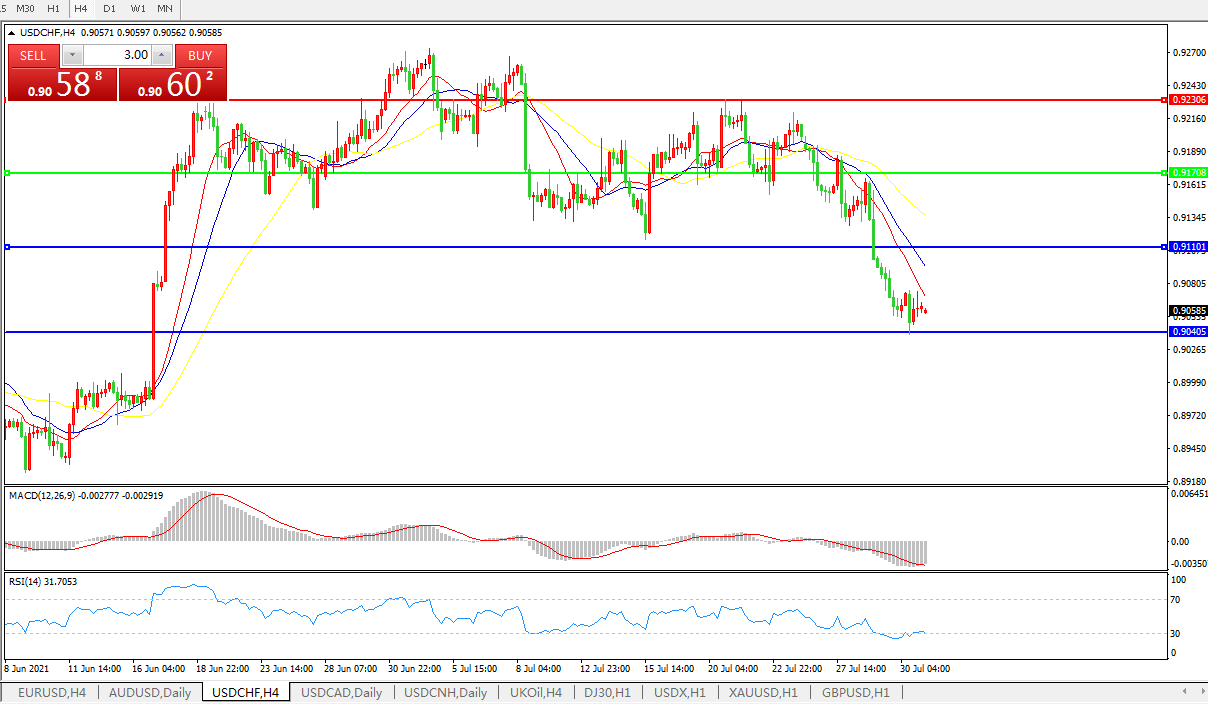 交易策略:0.9170下方看跌,目标0.9110、0.9040
