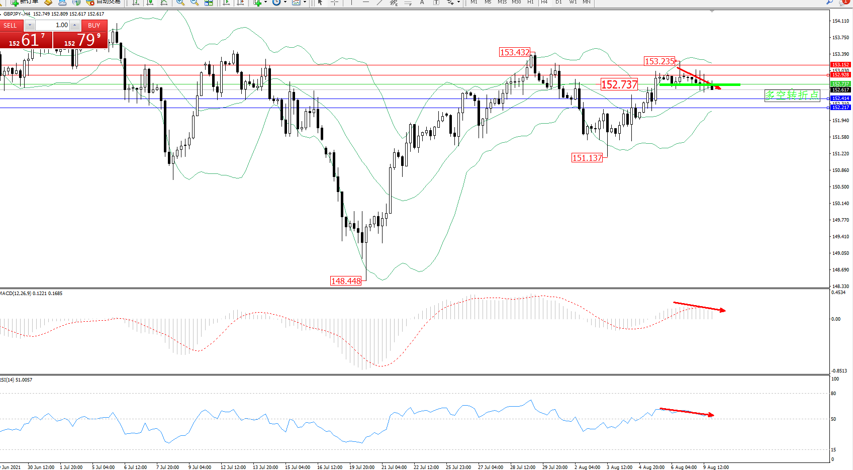 技术点评:高位空头动力维持断整理缓慢回撤触,触及布林带指标中轨维持后开始不断有破位下行迹象,布林带指标呈收口走势持续中,MACD指标处于0轴线上方多头区域维持窄幅整理平移,RSI指标处于50均衡线上方弱势震荡回撤下移;