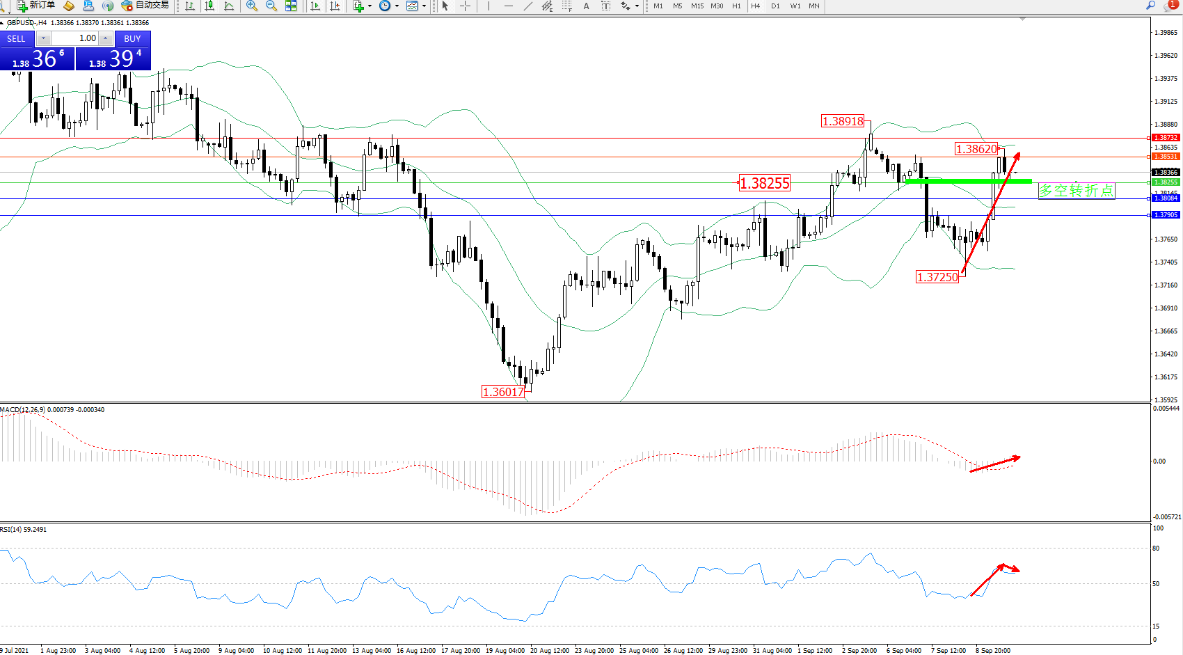 备选策略:1.38255上方看涨,目标1.38531、1.38732