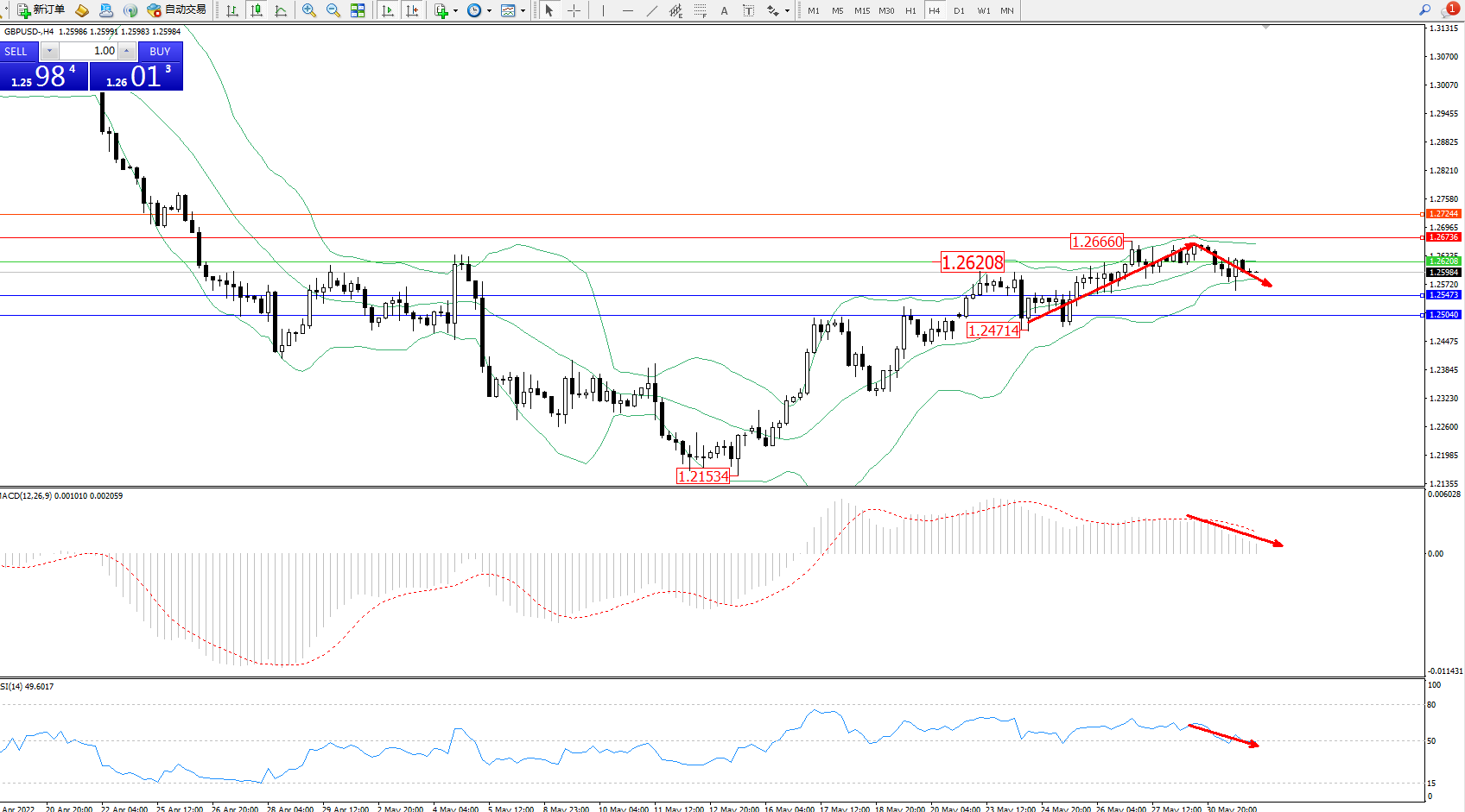 交易策略:1.26208下方看跌,目标1.25473、1.25040