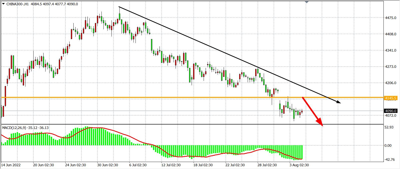 1小时图看,沪深300在4145之下盘整,该位是前期跳空缺口,该缺口未回补前难以开启涨势,日内在该位之下继续看跌为主,同时MACD于零轴之下量能持续放大,预示行情进一步回探的风险,在4145之下看4050-4000