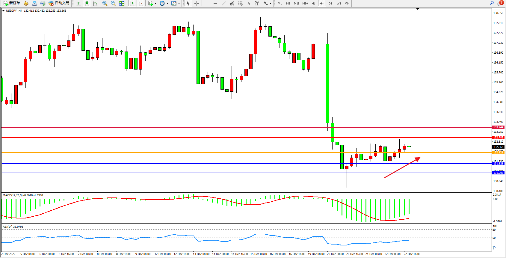 交易策略:132.121上方看涨,目标132.789、133.244