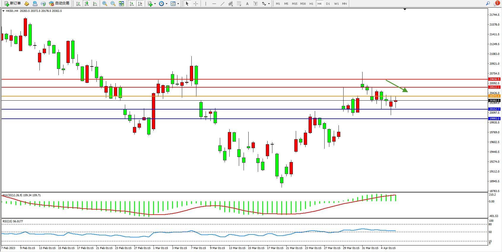 香港恒生指数4月6日(周四)收盘上涨56.61点,涨幅0.28%,报20331.2点;港股尾盘拉升,三大指数全线转涨,恒指、国指最终上涨0.28%和0.27%,恒生科技指数涨0.1%。大市成交额为1016亿港元。大型科技股涨跌不一,阿里巴巴涨超2%,腾讯、小米小幅上涨,京东跌3%,香港3月采购经理指数(PMI)由2月的53.9稍为回落至53.5,增长虽然放缓,但综观目前3个月的扩张期,改善程度仍属历史高位之一。