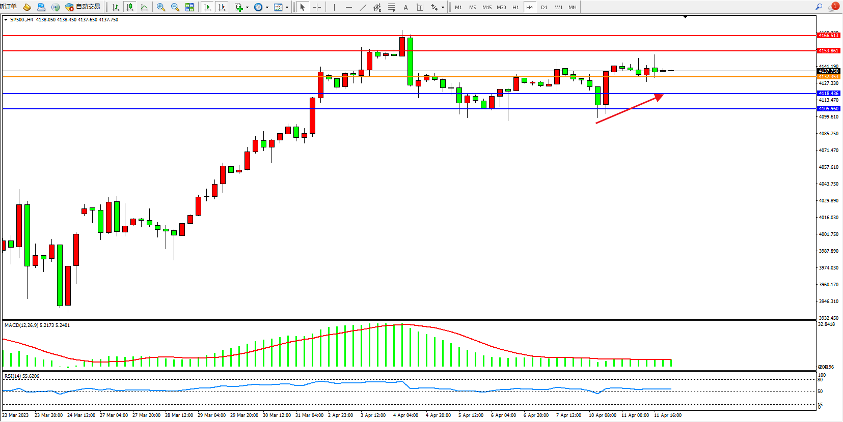 标普500指数4月11日(周二)收盘上涨0.49点,涨幅0.01%,报4109.60点;交易员等待即将公布的美国3月通胀报告,以寻找美联储加息前景新的线索。