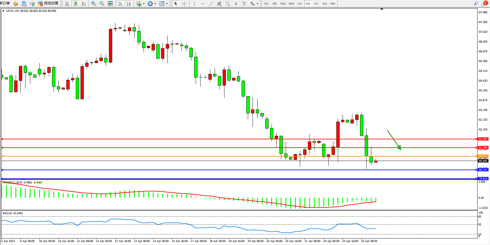交易策略:80.913下方看跌,目标80.247  79.810