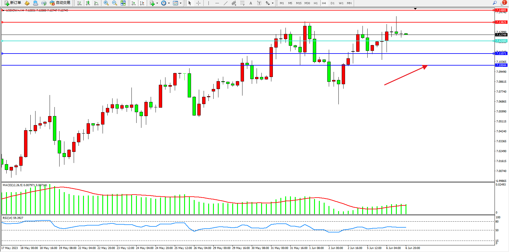 备选策略:7.12083下方看跌,目标7.11071 7.10044