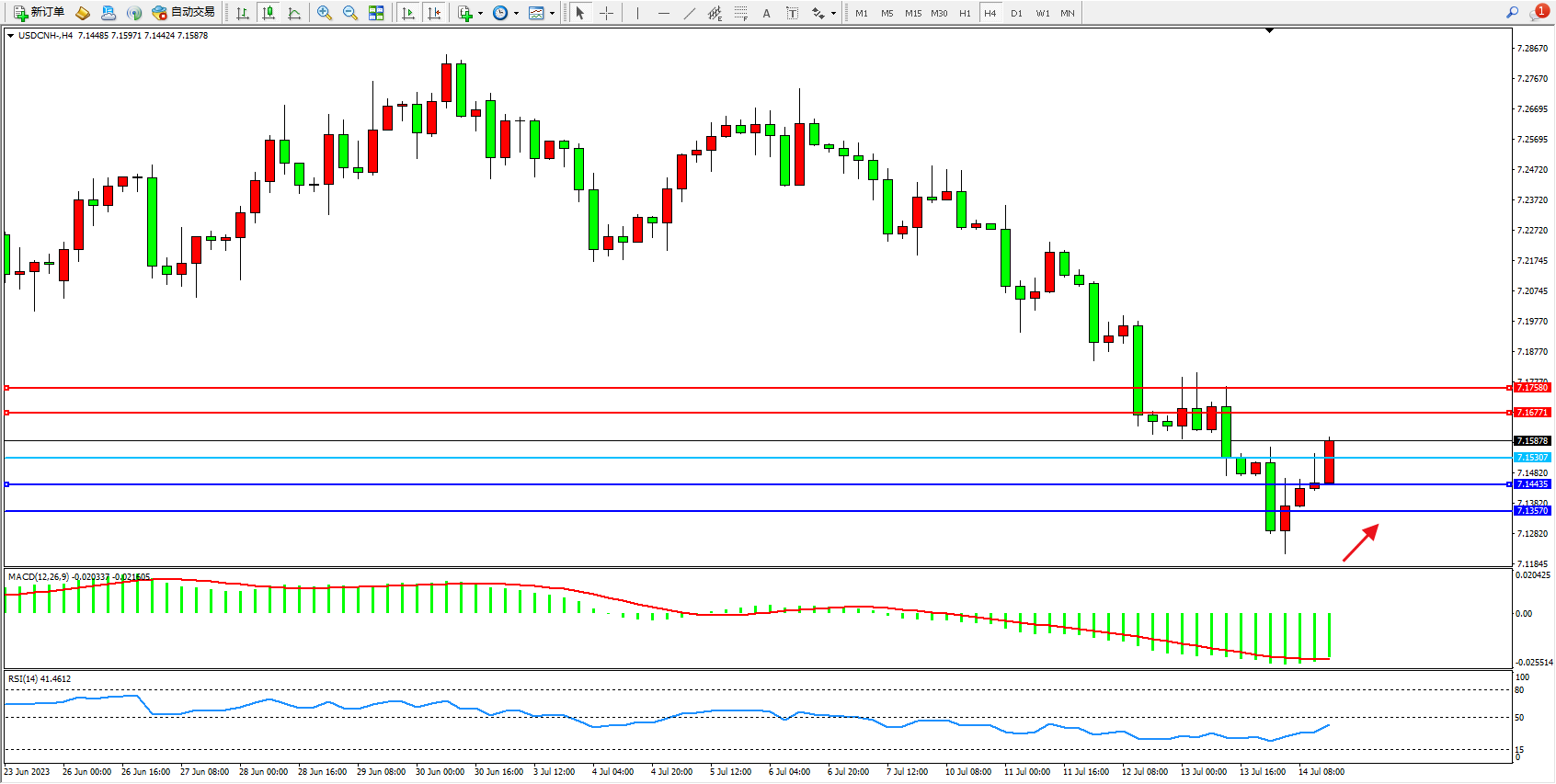 备选策略:7.15307下方看跌,目标7.14435 7.13570