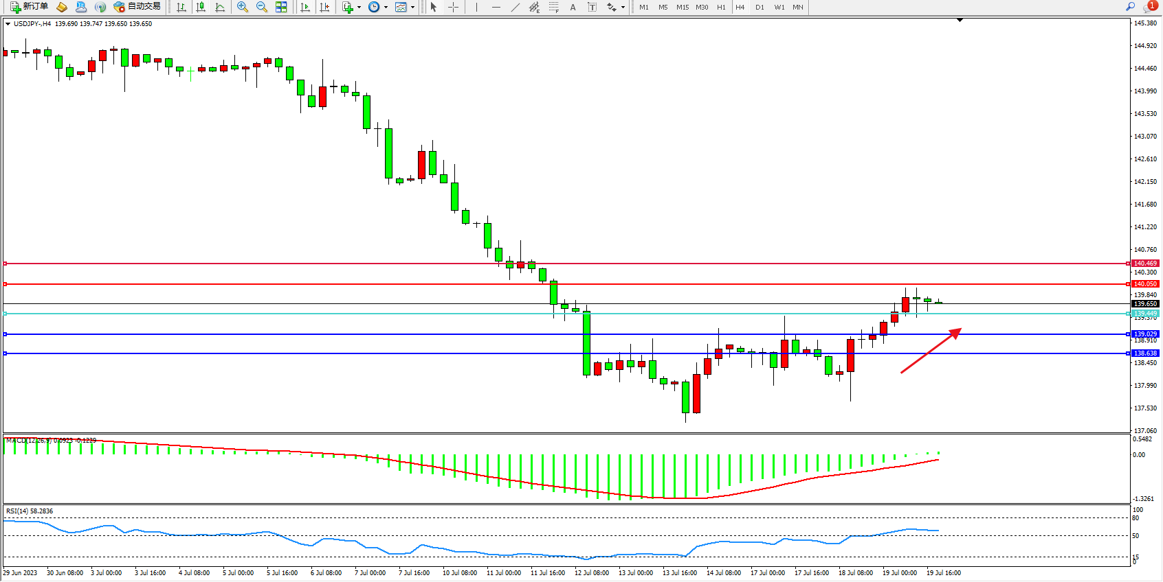 美元兑日圆维持139.650附近震荡,日本央行行长植田和男在印度举行的20国集团(G20)会议间隙发表言论,证实日本央行无意很快调整政策,尽管市场对日本央行可能在7月27-28日政策会议上调整政策的猜测有所升温。