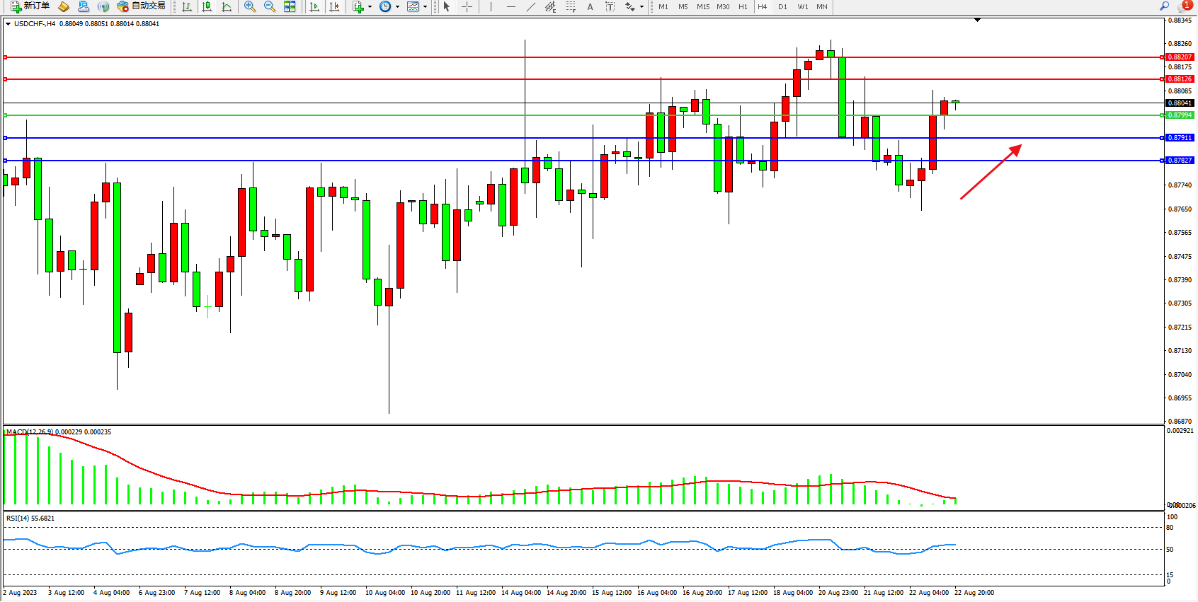 交易策略:0.87994上方看涨,目标0.88126 0.88207