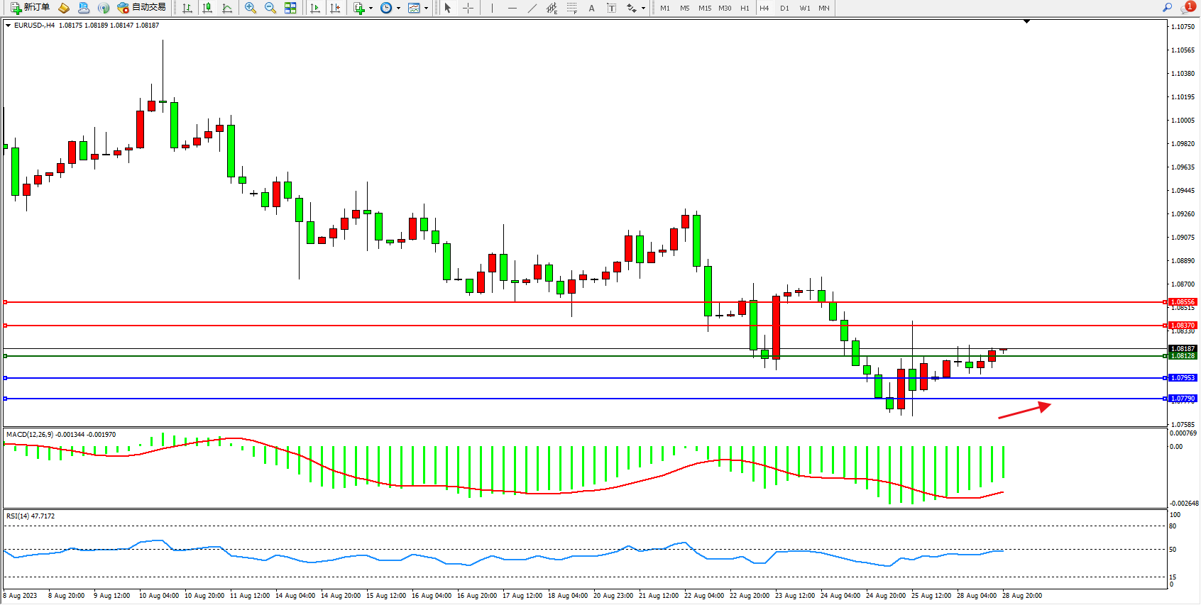 备选策略:1.08128下方看跌,目标1.07953 1.07790