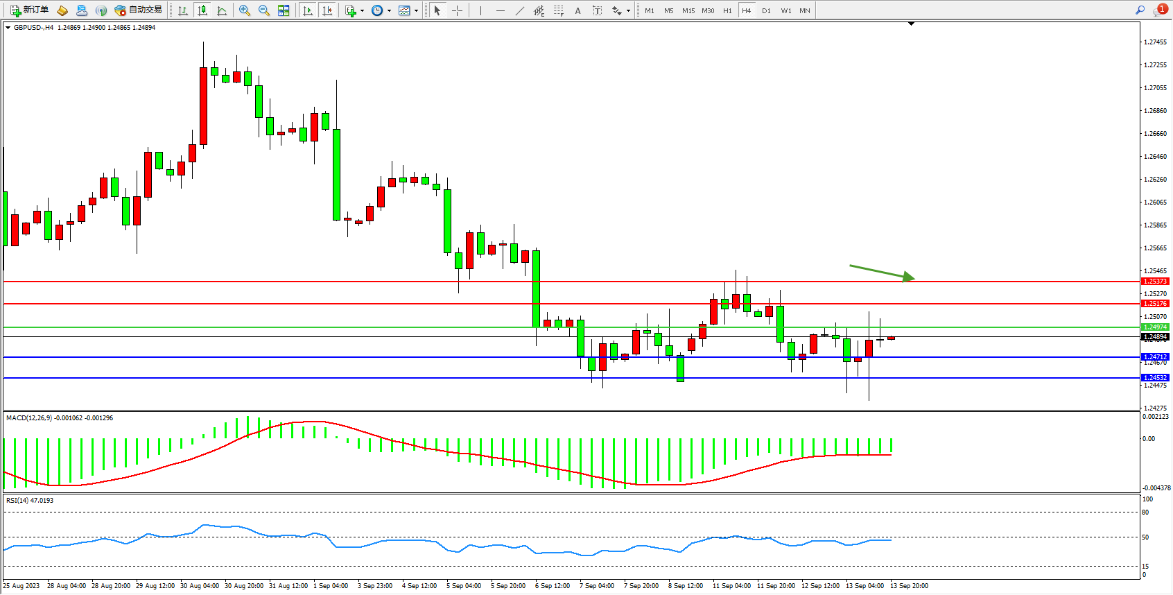 英镑美元GBPUSD ——4小时K线图显示: