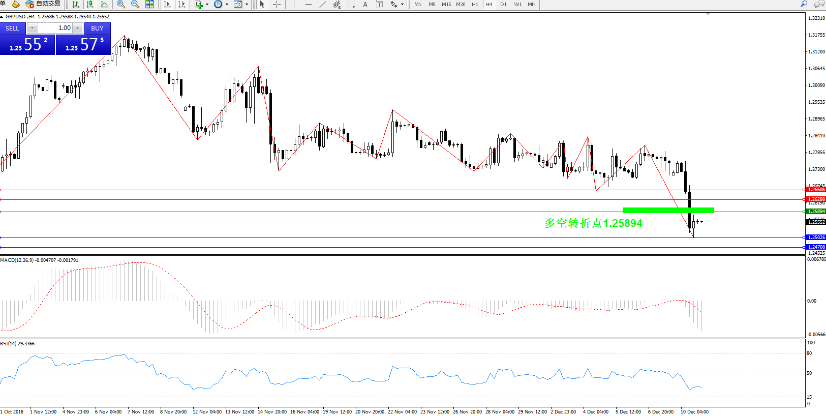 交易策略:1.25894上方看涨,目标1.26288、1.26606