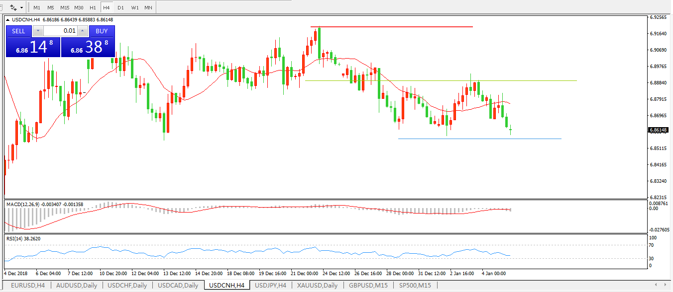交易策略: 在6.8905之下,看跌,目标价位为6.8545,然后为 6.8242 。