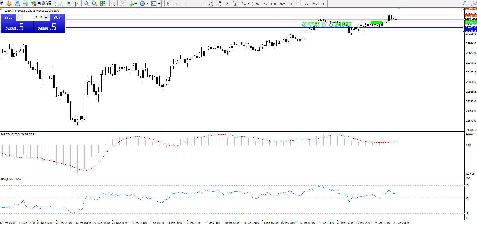 交易策略:24587上方看涨,目标24784、24954