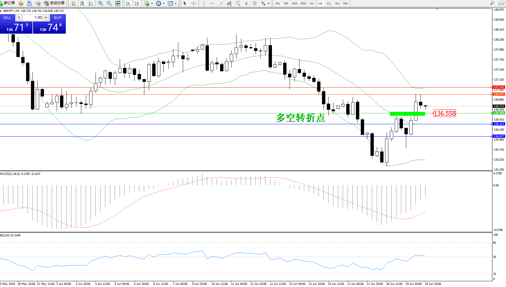 交易策略:136.558上方看涨,目标136.977、137.132