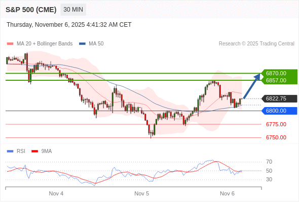 在 6800.00 之上,看涨,目标价位为 6857.00 ,然后为 6870.00 。