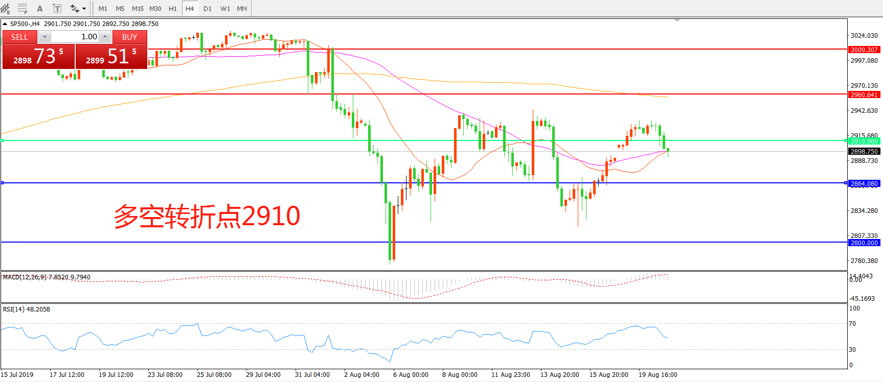 交易策略:在2910.00之下看跌,目标2864.00    2800.00