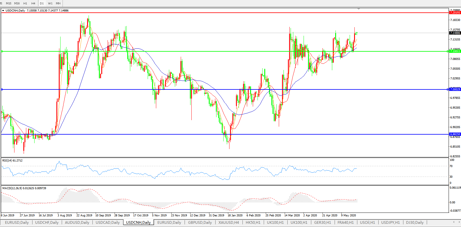 交易策略: 在7.1000之上,看涨,目标价位为7.2000,然后为7.3000。