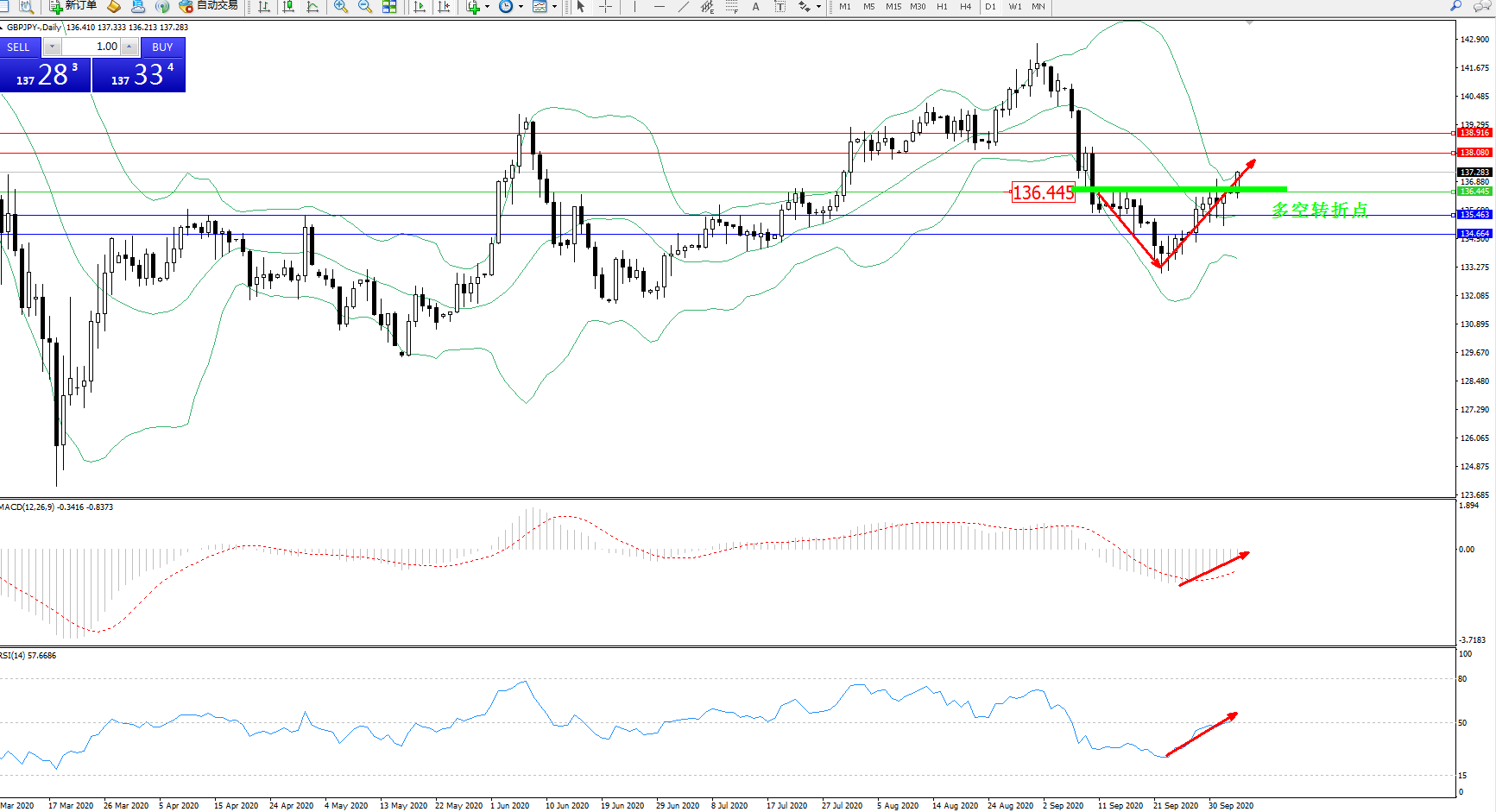 英镑兑日圆拉升至137.361附近,英国首相约翰逊与欧盟委员会主席冯德莱恩通话,评估英欧未来关系谈判情况,双方认同达成协议的重要性,要求加紧谈判以弥合“显著”分歧。自3月初启动以来,英欧未来关系谈判波折不断。从最新一轮谈判看,谈判气氛有所改善。不过距年底“脱欧”过渡期结束仅剩不到3个月,要避免英国“无协议脱欧”,双方需快马加鞭。英国脱欧协商的关键问题仍未得以解决,英国与欧盟在渔业问题及国家援等方面存在分歧,双方都没有公布任何有关进展的细节,此外英国财政大臣苏纳克表示,由于新冠病毒的影响,英国经济正在经历变化,这一点不容忽视,在新冠肺炎疫情发生后,处处都面临着艰难的选择。有一系列的预测,没有一个显示英国经济表现良好,不能保证在圣诞节前一切都会好起来,赞同在时机成熟时采取更多措施,推动某些行业的复苏。