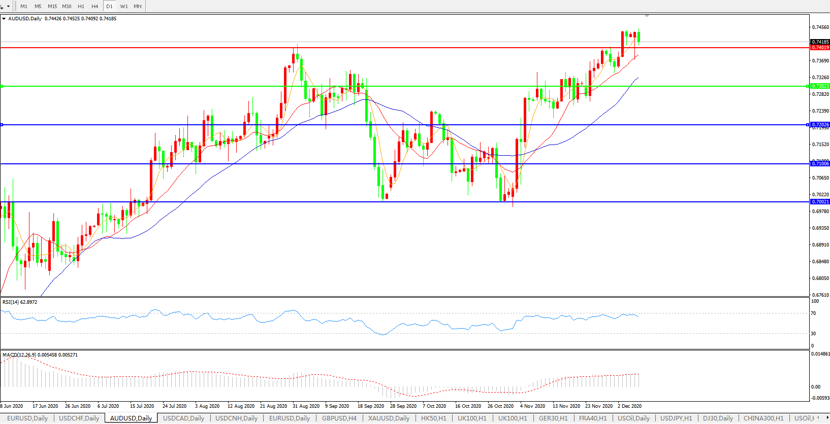 交易策略:0.7300上方看涨,目标0.7400、0.7500