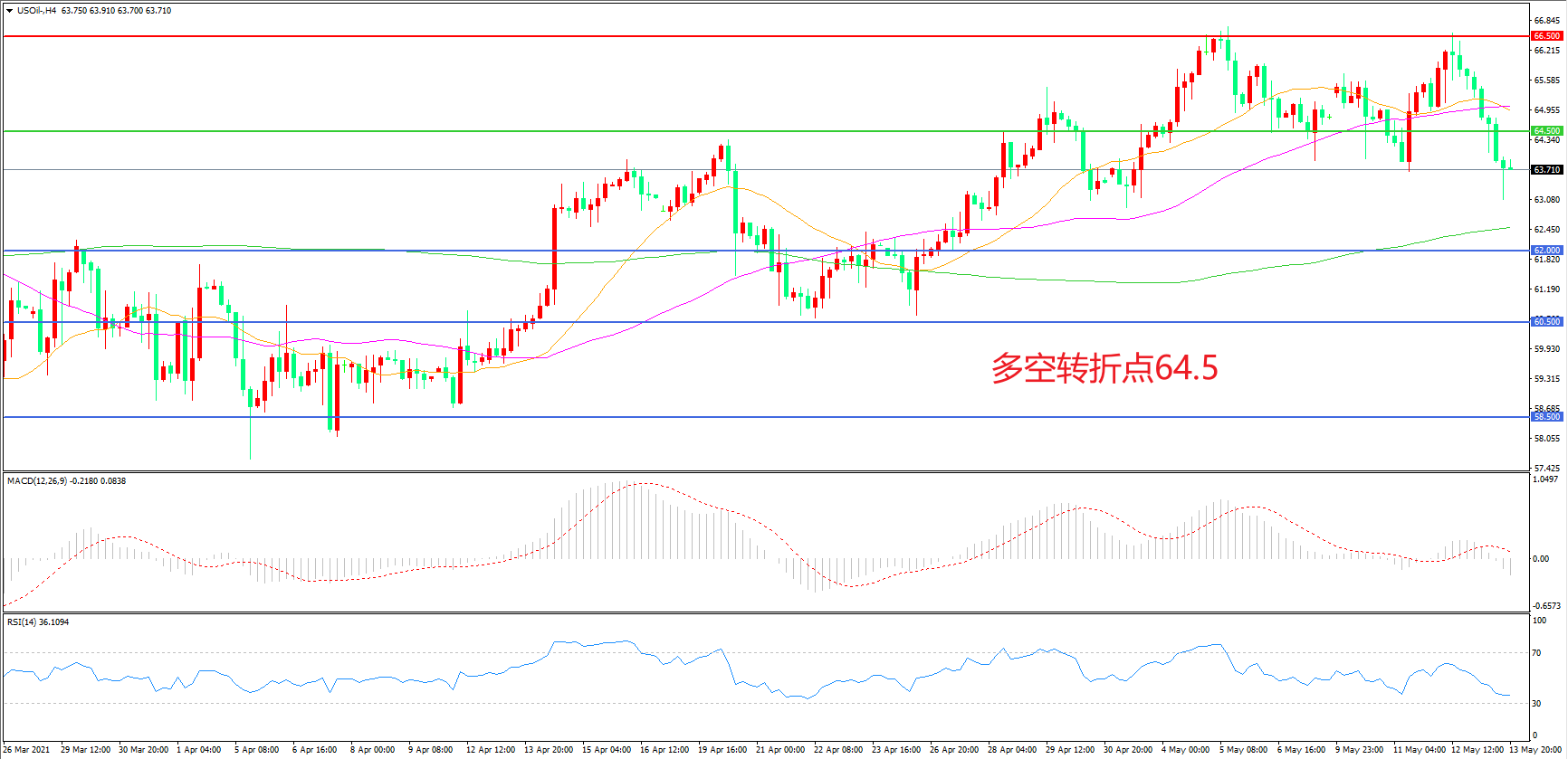 备选策略:在64.50之下看跌,目标62.00    60.50