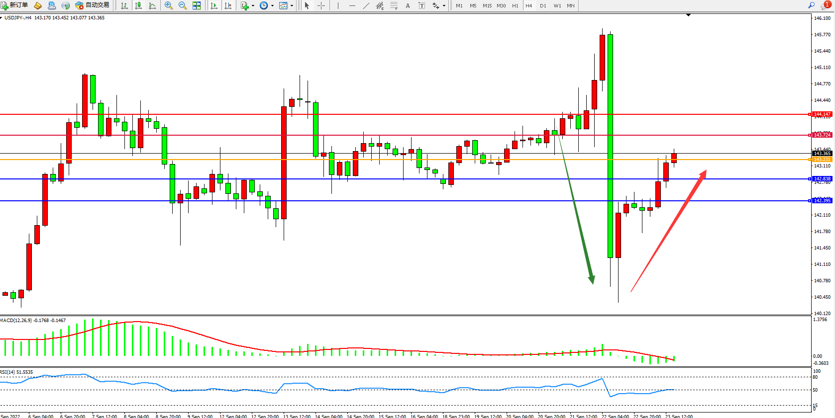 美元兑日圆维持143.365附近震荡,日本干预外汇市场,自1998年以来首次买入日元,试图在日本央行坚持超低利率政策后支撑受打击的本币。