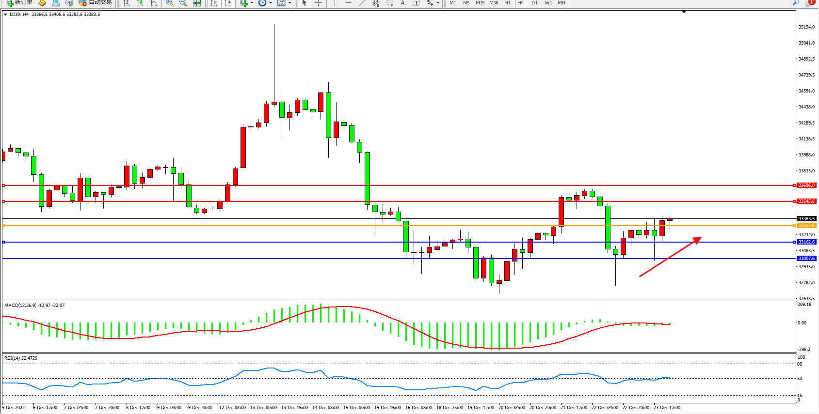 道琼斯指数12月23日(周五)收盘上涨176.44点,涨幅0.53%,报33203.93点;美联储担心,长时间的高通胀可能会刺激工人不断要求越来越高的工资,使物价更难得到控制。美联储计划进一步提高利率,以使经济放缓到足以缓解工资上涨压力的程度,这一策略必然会提高失业率,并可能引发经济衰退。周一圣诞节休市一日。