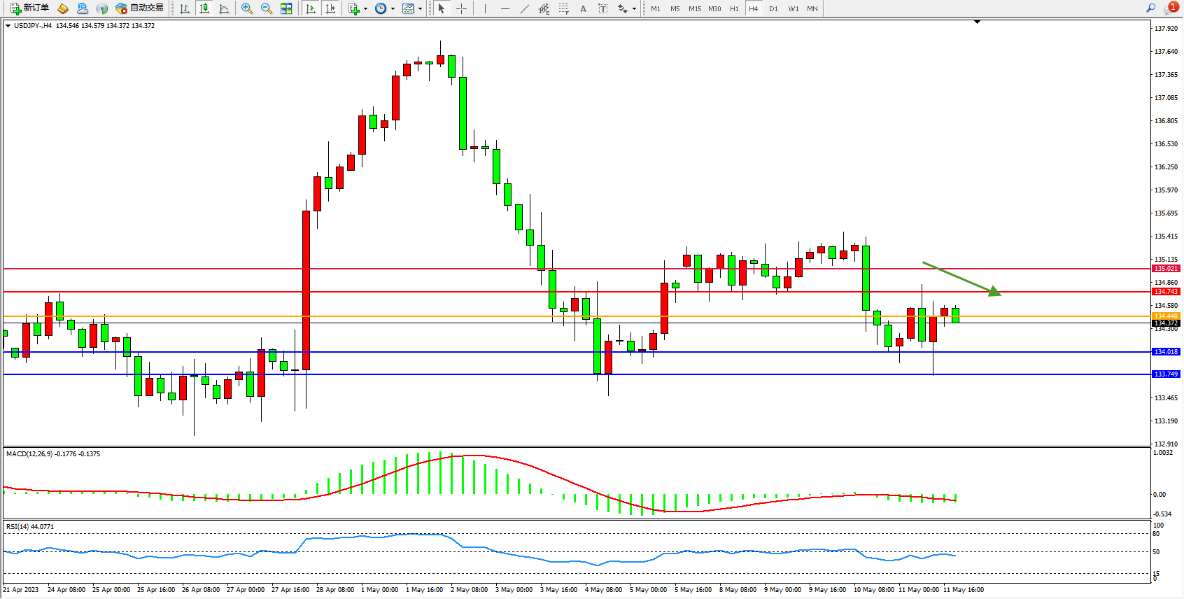 支撑位:134.018  133.749